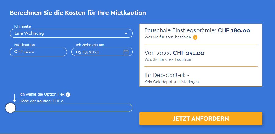 Mietkautionsbetrag: CHF 4’000 | Depotanteil: CHF 0