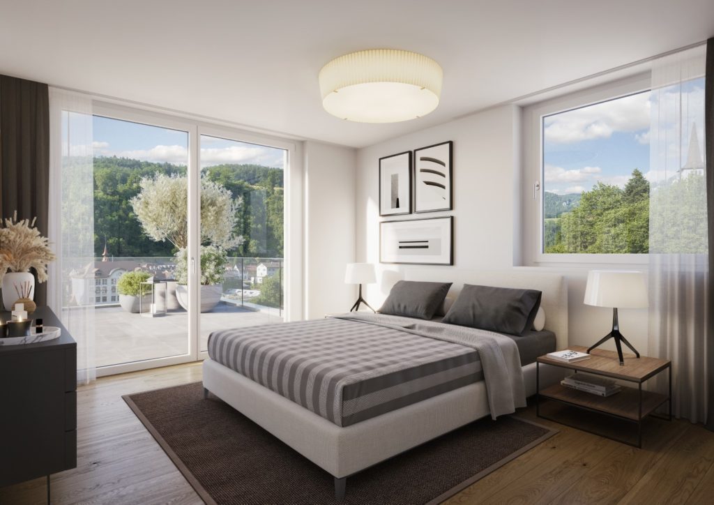 Die Wohnungen sind mit grosszu?gigen Aussenbereichen ausgestattet und verfu?gen u?ber 3.5 bis 5.5 Zimmer, wodurch viel Privatsphäre geboten wird.