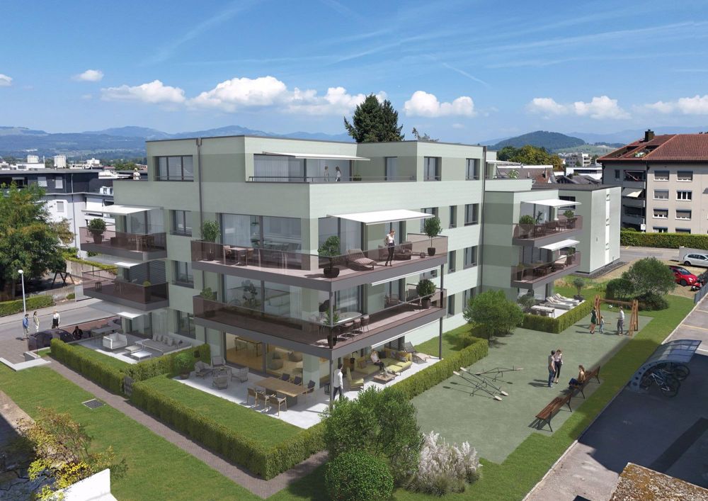 Beschreibung Projekt NH 22, Lachen Das Mehrfamilienhaus NH 22 entsteht in einem ruhigen Wohnquartier im Oberdorf, nur 12 Gehminuten vom See entfernt. Mit ihrem Ausbau von Stil und Klasse versprechen die 14 Eigentumswohnungen Genuss und reine Wohnfreude in 2.5 bis 4.5-Zimmern (73 – 122 m2 BWF). Lage: Zum Kindergarten sind es 5 Minuten zu Fuss. Ebenso befindet sich eine Kinderkrippe und ein Kinderhort im Oberdorf. Die Primar- und die Sekundarschule liegen einen kurzen Kilometer entfernt beim See. Im Dorfkern findet sich alles für den täglichen Bedarf (Detailfachgeschäfte und Oberseezentrum). Zum Bahnhof sind es 8 Gehminuten, zur Autobahneinfachrt 2 Fahrminuten. Innen- und Aussenräume: durchdachte , gut möbilierbare Grundrisse Fensterfronten auf zwei Seiten, viel Helligkeit Wohn-Ess-Landschaft der Wohnung geht nahtlos in die offene Küche über. Bis zu 40 m2 gross ist sie, in den beiden Attikawohnungen sogar fast 45 m2. Zimmergrössen von 12 bis 20 m2 bei den meisten Wohnungen scheint das Tageslicht ins Hauptbadezimmer weitläufige Balkone (bis 35 m2) schöne Sitzplätze (24 – 50 m2) mit Gartenanteil Terrassen von 46 – 67 m2 im Attikageschoss alle Aussenbereiche sind mit Feinsteinzeugplatten (80x80 cm) belegt Auch die Kellerabteile mit ihren Flächen von 15 bis 23 m2 sind mehr als grosszügig konzipiert. In der Tiefgarage sind 19 Autoabstellplätze, 6 Stellplätze für Motorräder und 2 sehr grosse Garagenboxen mit Waschtrog und separatem Tor vorgesehen. Draussen stehen 3 Abstellplätze zum Verkauf. Wohnkomfort Die hochwertigen, exklusiven Materialien des Innenausbaus sind mit Stil ausgewählt. Komfort und Eleganz finden zusammen – zum Beispiel mit dem gebürsteten, geölten Parkettboden mit 220 cm langen Langriemen oder hochwertigen Feinsteinzeugplatten im Format ab 60x60 cm. Die Ausstattung der Küche ist lückenlos mit hochwertigen Geräten und Materialien (Keramikabdeckung, Quooker, kratzfester saphirmatte Induktionskochherde, etc.), die den Wohnkomfort erster Klasse definieren. Nachhaltigkeit Bei der Nachhaltigkeit punktet NH 22 gleich mehrfach – mit einer leistungsfähigen Photovoltaik-Anlage auf dem Dach, dem Anschluss an das Fernwärmenetz von Energie Ausserschwyz AG und der Fassade aus klimaneutral hergestellten Backsteinen. Baubeginn: Herbst 2025 Bezug: Sommer 2027 Wir freuen uns auf Ihre Kontaktnahme. www.nh22.ch