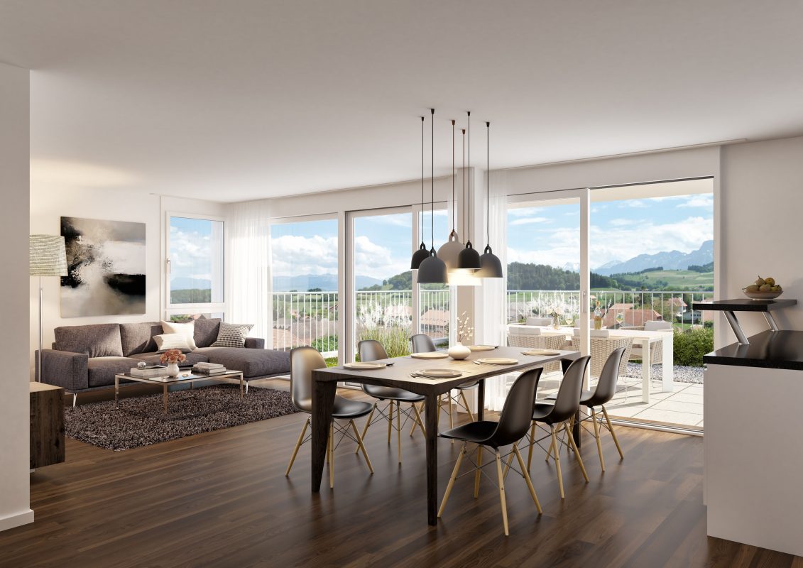 360° Panorama Wohnzimmer - Neubau MFH - Hohenrain